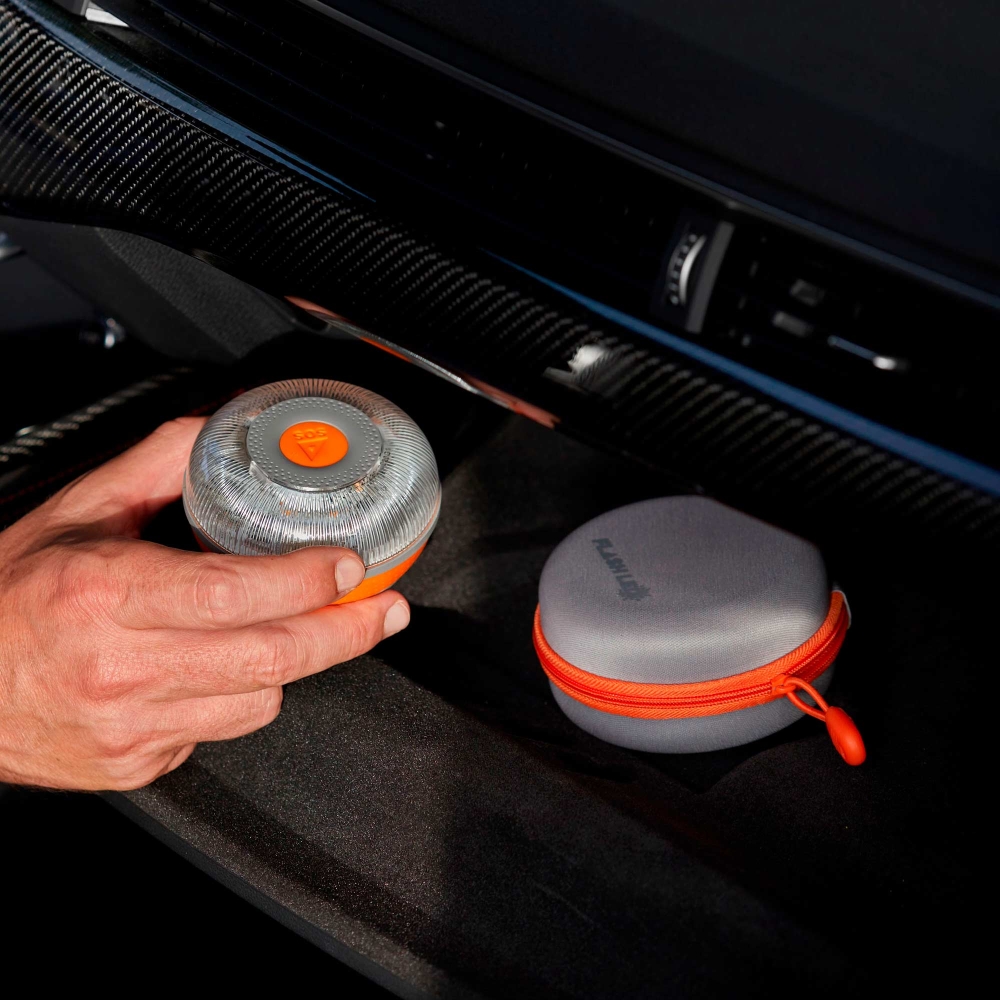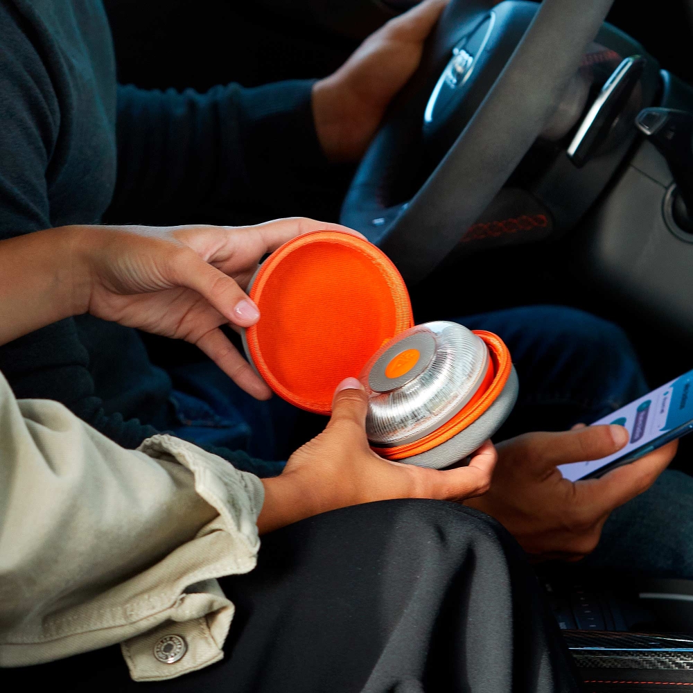 Baliza de señalización de accidentes y emergencias. Se enlaza de forma anónima con DGT 3.0 a través de Telefónica Tech, con tarjeta SIM y mantenimiento de línea incluidos hasta 2038.